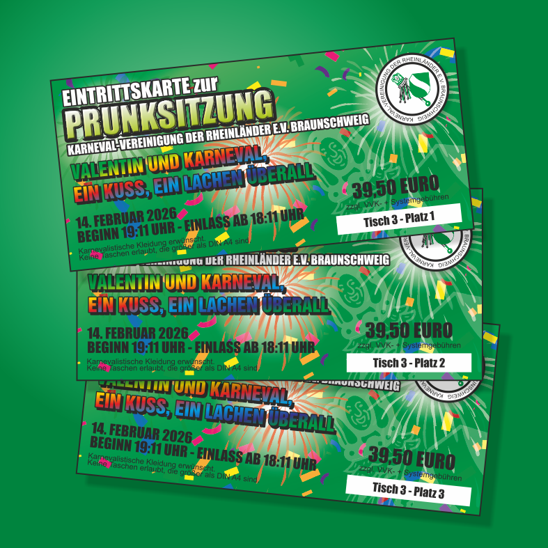 „Brunswiek Helau“, ihr Jecken und Narren! Die fünfte Jahreszeit erreicht ihren Höhenpunkt. Ihr habt am Tag der Liebenden noch nichts vor? Dann kommt zu unserer großen Prunksitzung unter dem Motto: „Valentin und Karneval, ein Kuss, ein Lachen überall.“ Mit euch verbringen wir eine Nacht voller Frohsinn und bester karnevalistischer Stimmung. Wenn die Herzen höherschlagen und das Konfetti durch die Luft wirbelt, dann wird gefeiert, getanzt und gelacht was das Zeug hält. Es erwartet euch ein närrischer Festabend voller Humor, Musik, Show und echter Karnevalsmagie.