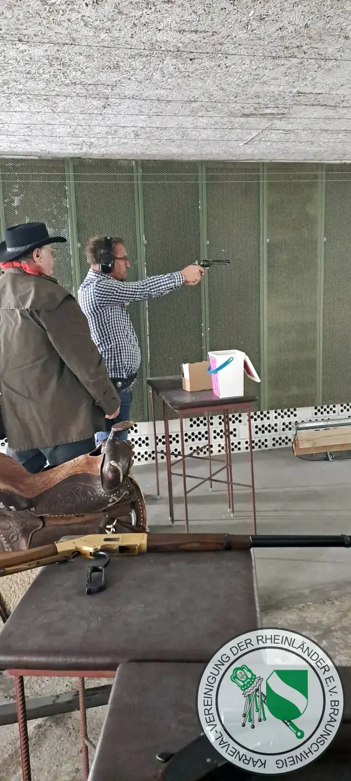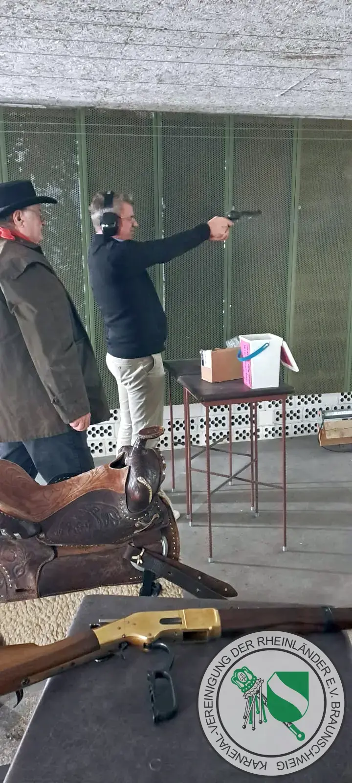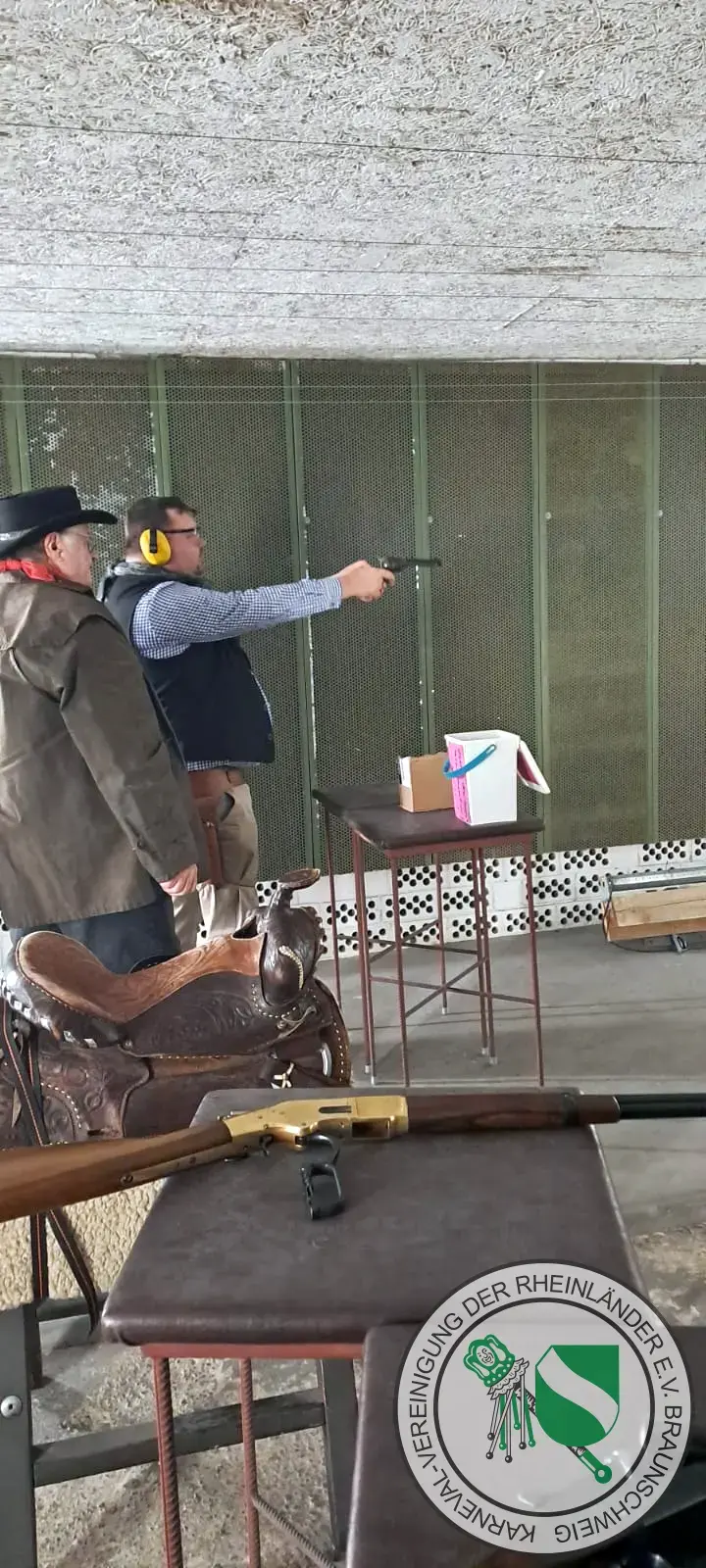 Mit einem großen „Yee-haw“ ging es am Wochenende mit den Ehrenfunken und Sponsoren in Westernverkleidung zum 1. Country Club Braunschweig nach Bortfeld. Dort wurde geschossen, bis der Colt glühte.