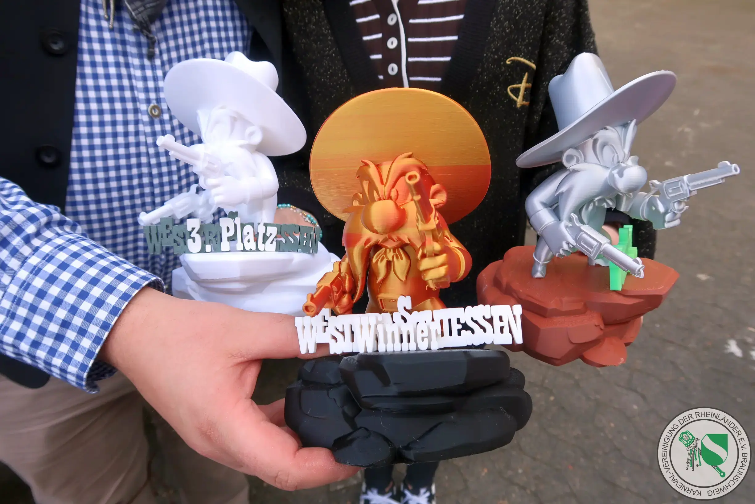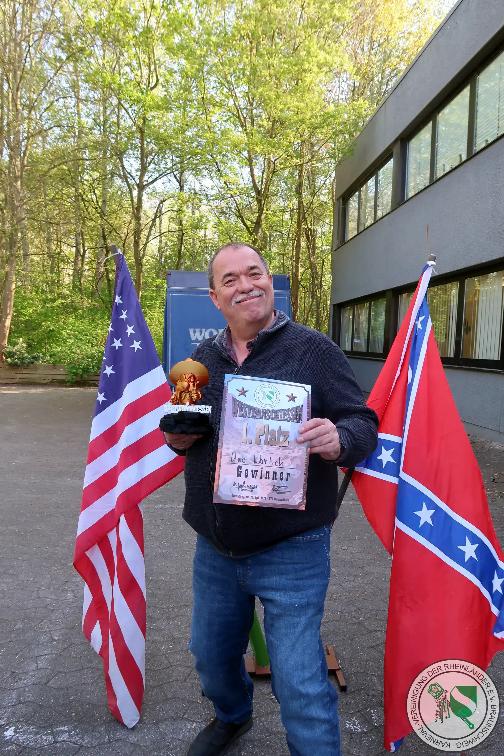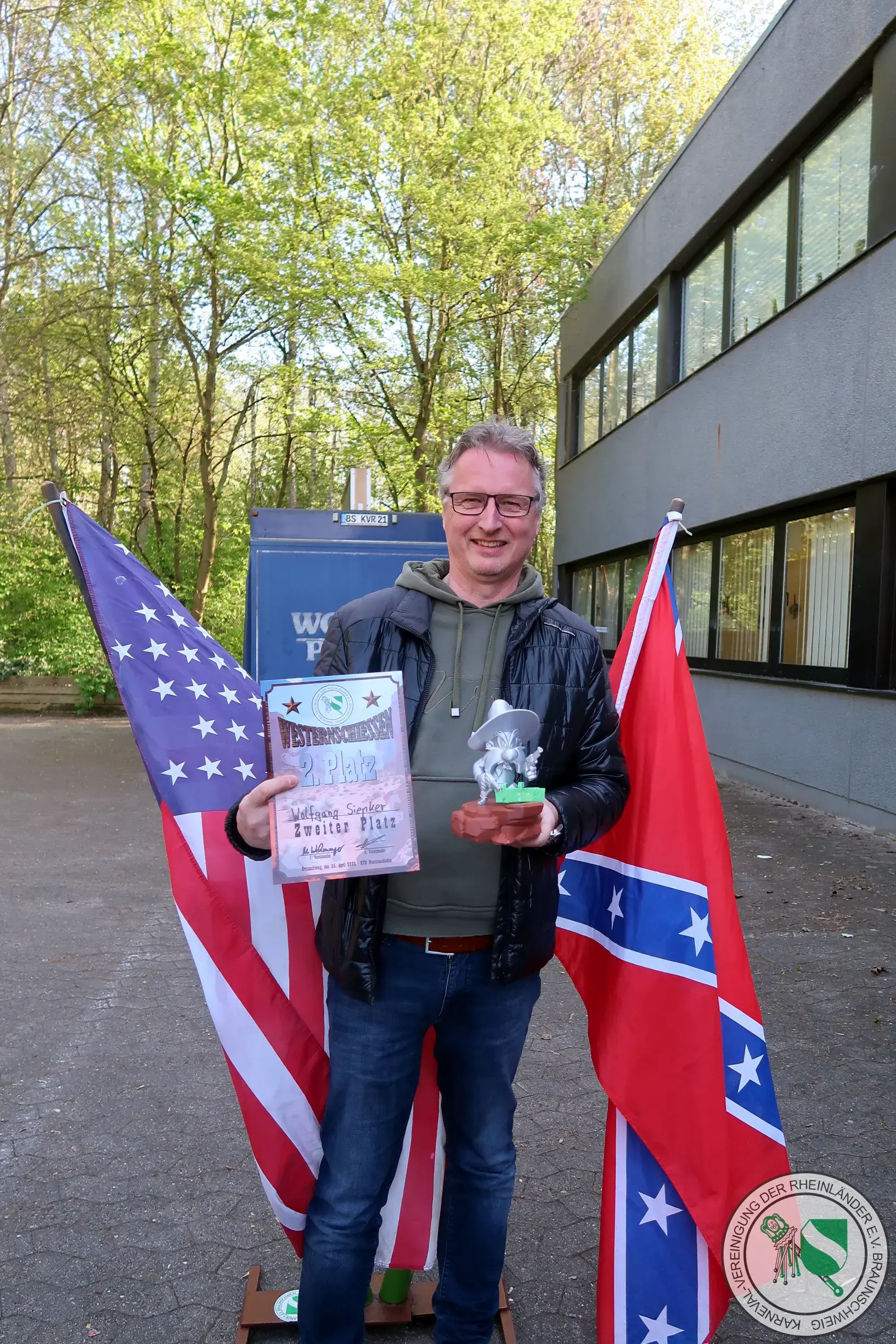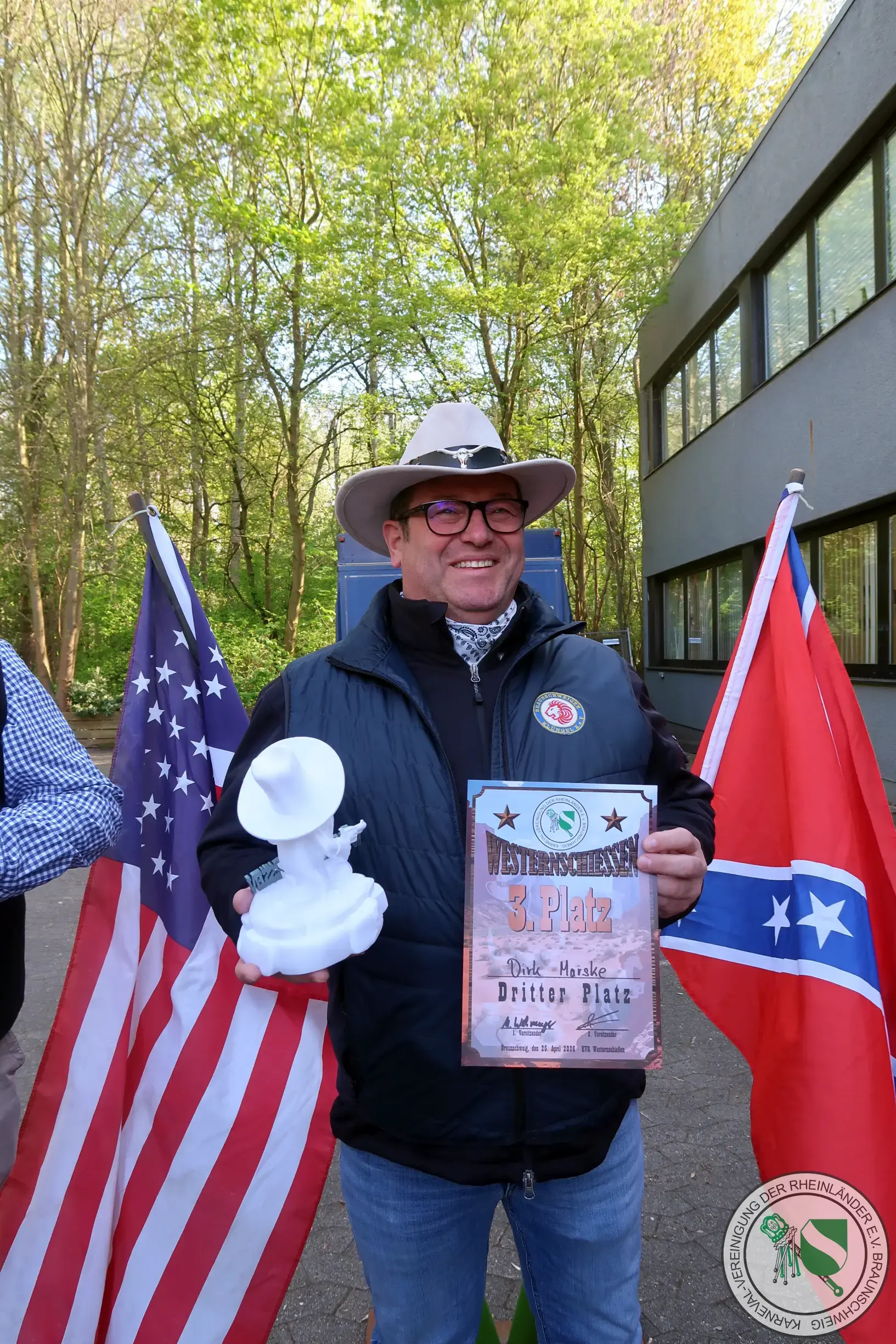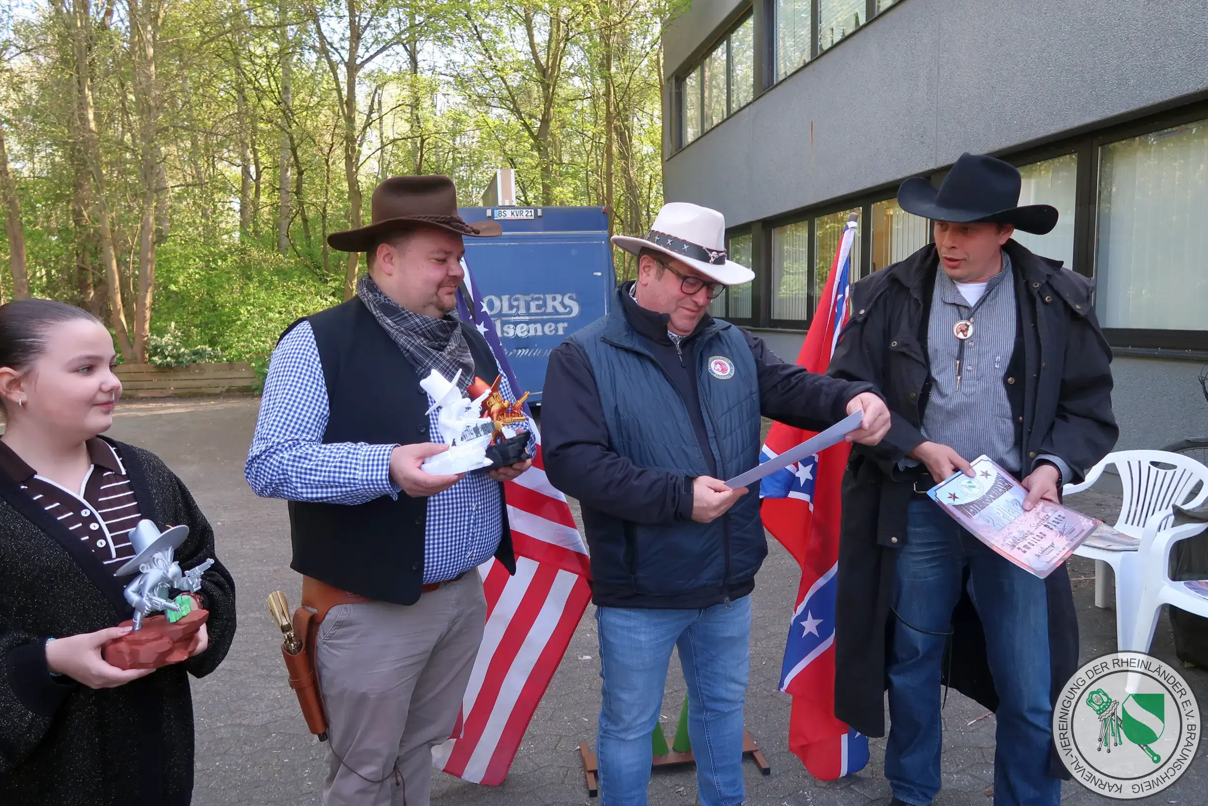 Im Anschluss führte der Weg ins Vereinsheim, wo nicht nur Freunde und Familien auf die Cowboys warteten, sondern auch kalte Getränke und saftige Steaks von der Fleischerei und Partyservice Neubauer. Höhepunkt des Tages war die Preisverleihung: Dirk Marske sicherte sich den 3. Platz, Wolfgang Siepker belegte ganz sportlich den 2. Platz. Die meisten Punkte erzielte Uwe Warlich und landete somit auf Platz 1.